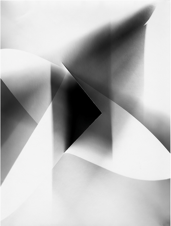 Das Luminogramm ist die direkteste Art, mit Licht zu gestalten. Zwischen Lichtquelle und lichtempfindlicher Schicht befindet sich kein Objekt im Strahlengang, an dem sich Licht brechen könnte, um dessen Licht- oder Schattenspur auf dem Papier zu zeichnen.