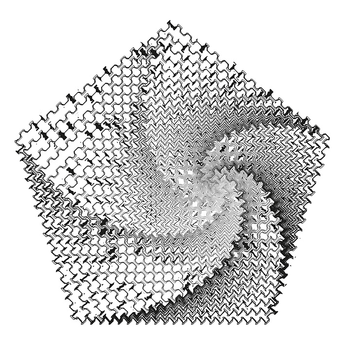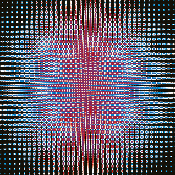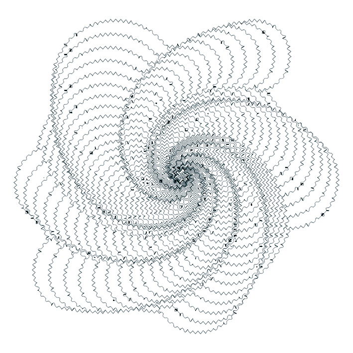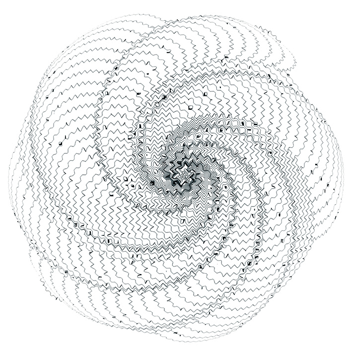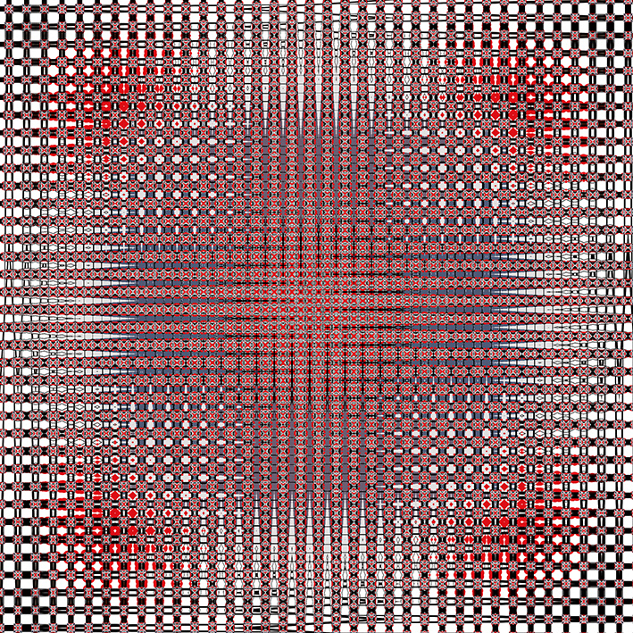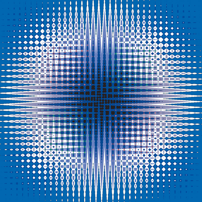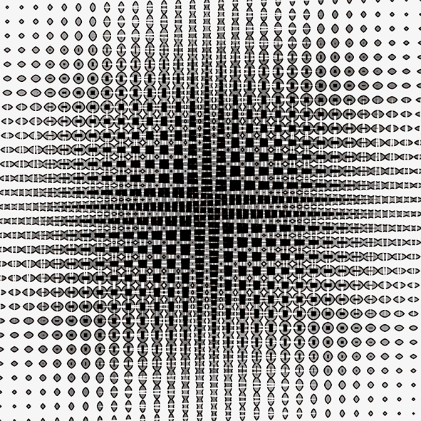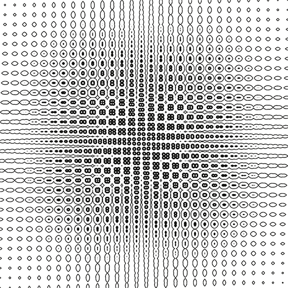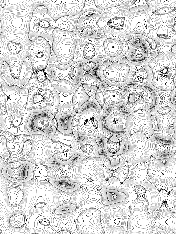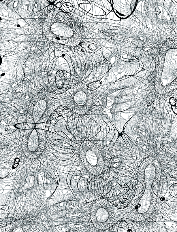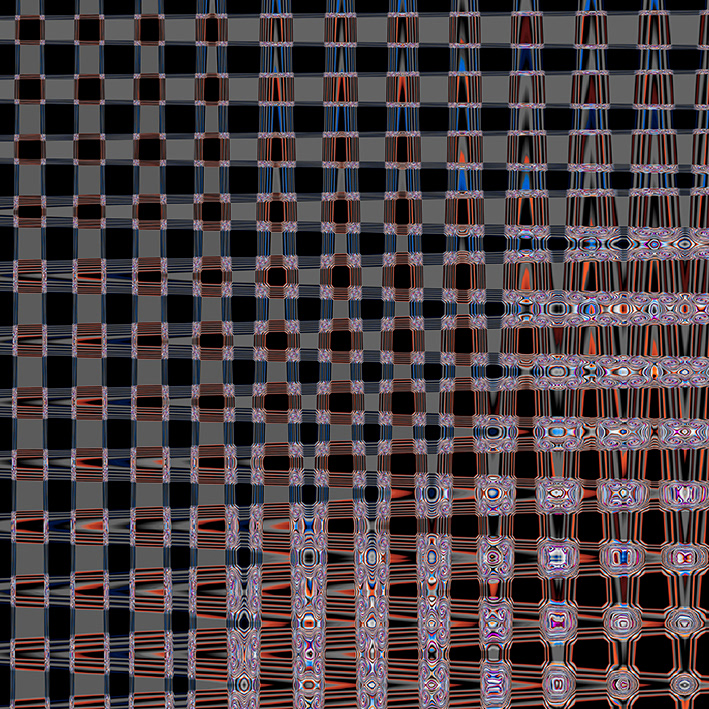 Bei meinen digitalen, technischen Bildern geht es nun darum, aus einem „virtuellen Nichts“ heraus, also der weißen Fläche auf dem Bildschirm Strukturen zu erzeugen, direkt aus dem Computer heraus und wieder ohne Kamera. Ausgangspunkt ist eine leere Datei, die zu einem komplexen Datensatz wird in Adobe Photoshop.